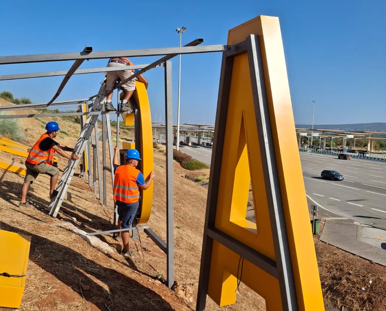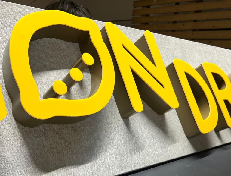 Letras 3D Monobloco em diversos materiais como o acrílico, o PVC, o alumínio ou o inox, com ou sem luz LED, em diversos formatos e espessuras.